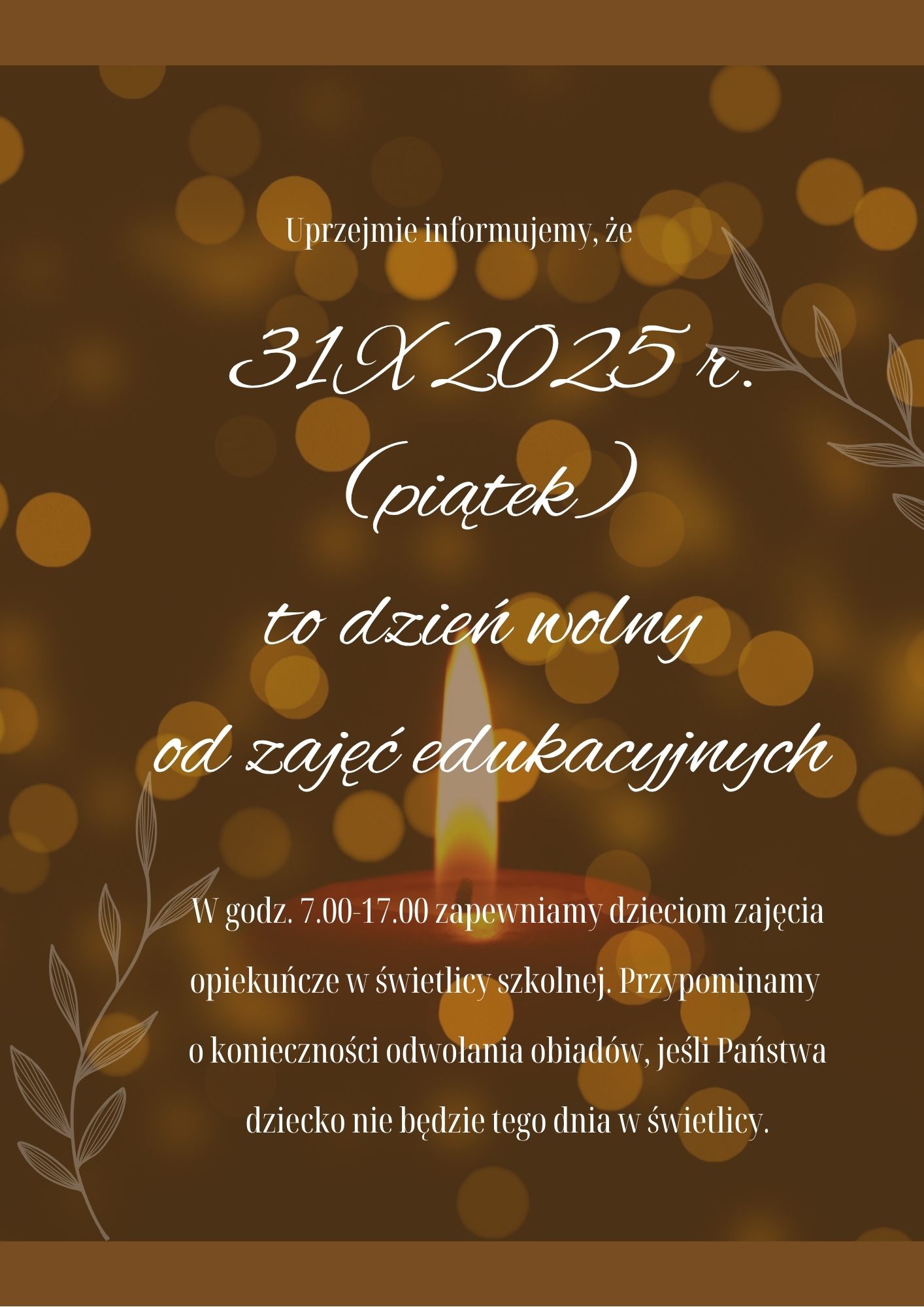 Uprzejmie przypominamy, że 31 X 2025 r. (tj. piątek) to w naszej szkole dzień wolny od zajęć edukacyjnych.