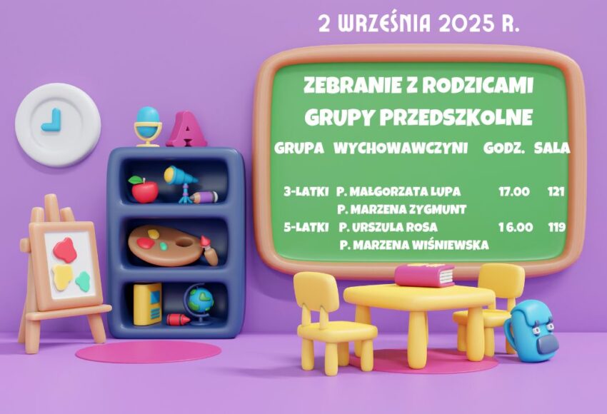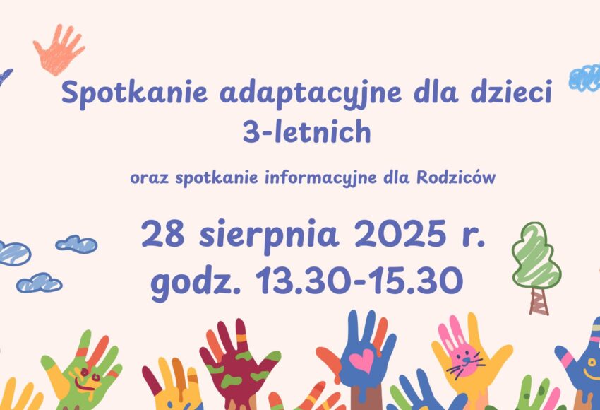 Serdecznie zapraszamy dzieci 3-letnie wraz z rodzicami na spotkanie zapoznawcze do naszego przedszkola, które odbędzie się w czwartek – 28 sierpnia 2025 r. w godz. 13.30-15.30. Po krótkim spotkaniu informacyjnym dzieci wraz z rodzicami przejdą do sali, gdzie będą mogły zapoznać się ze swoimi Paniami oraz pobawić z innymi dziećmi […]