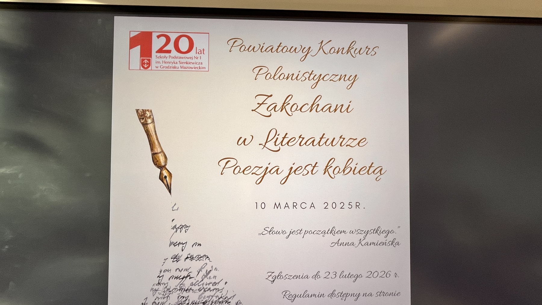 26 lutego 2026 r. w naszej szkole odbył się etap szkolny konkursu literackiego „Zakochani w literaturze”. W zmaganiach wzięło udział 14 uczniów z klas: 6a, 6c, 7a oraz 8a, 8b, 8c i 8d. Uczestnicy wykazali się dobrą znajomością poetyckich lektur oraz wrażliwością na piękno słowa pisanego.