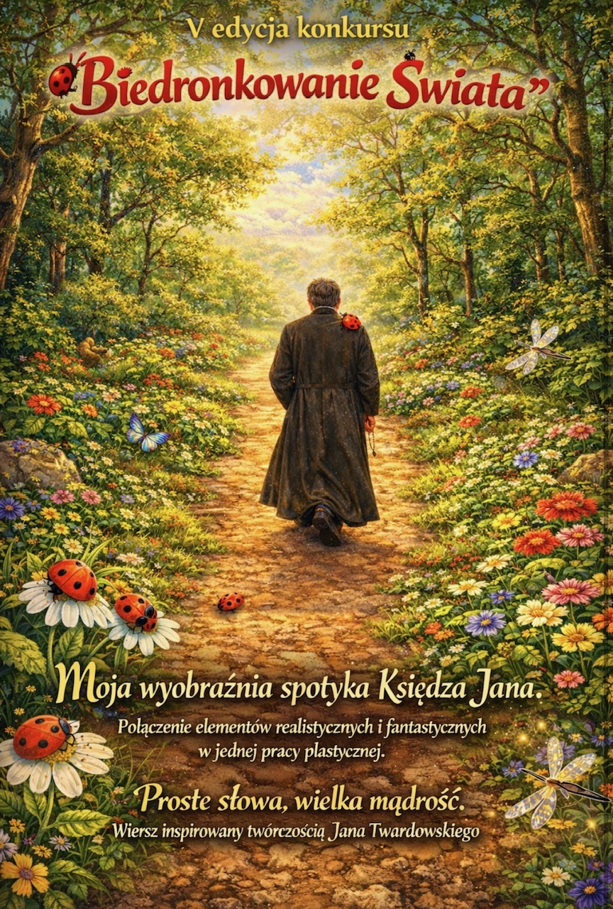 Serdecznie zapraszamy uczniów klas 1-8 do udziału w konkursie inspirowanym twórczością x. Jana Twardowskiego „Biedronkowanie świata”. Organizatorzy przewidzieli dwie kategorie: praca plastyczna i wiersz.